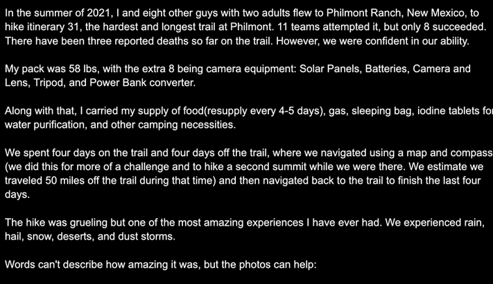 Photos from a 150+ mile hike in New Mexico